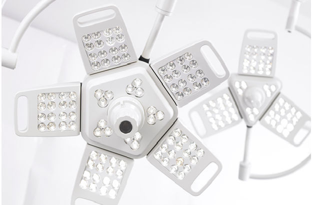 Eclairage opératoire équipé des unités lumineuses LED de haute performance produisant un éclairage sans ombre de couleur, garantissant une lumière homogène.